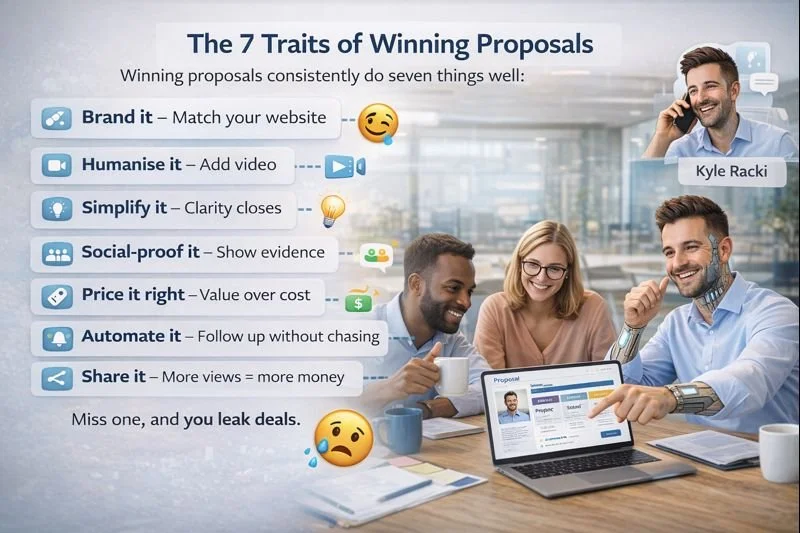 These lessons come from Kyle Racki, CEO of Proposify, based on insights from over 900,000 proposals analysed on the Proposify platform and shared in a recent YouTube presentation.